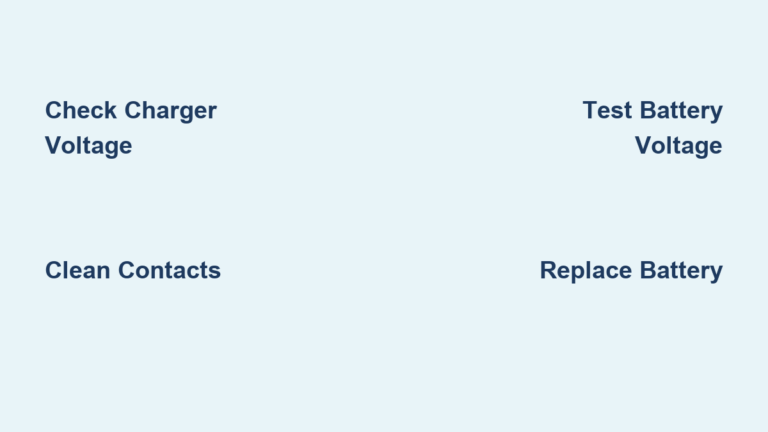 Visual cue: Look for green/black corrosion on contacts—this insulates the connection. After cleaning, a healthy battery should show a solid blue charging light within 30 seconds. If not, the battery has failed internally.