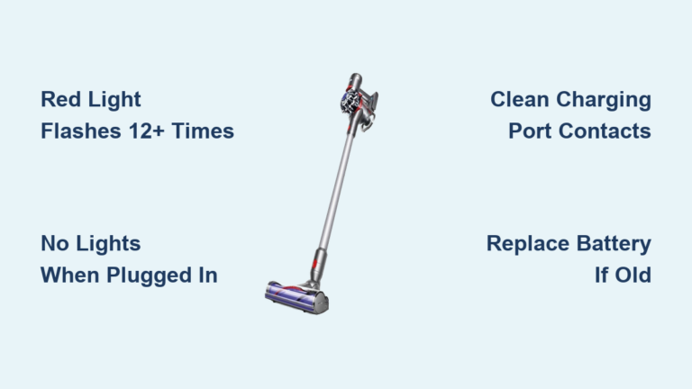 If your Dyson V7 not charging, you’re facing one of the most common issues reported by owners—especially those with models over two years old. You plug it in, but no blue light appears. Or worse, a red light flashes a dozen times and then dies. The vacuum might power on only when connected to the charger, shutting down the moment you unplug it. While this can feel like the end of your vacuum’s life, the truth is most Dyson V7 charging problems are fixable at home. In this guide, you’ll learn how to diagnose the exact cause—whether it’s a dead battery, faulty charger, or software glitch—and apply proven, user-verified fixes. You’ll also discover when battery replacement is necessary, how to do it safely, and how to extend the life of your new battery.